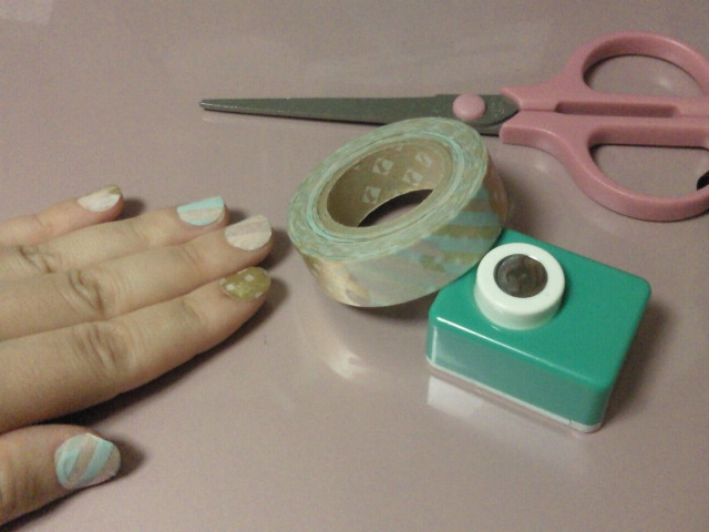 ハサミとクラフトパンチとマスキングテープでなんちゃってマニキュア。