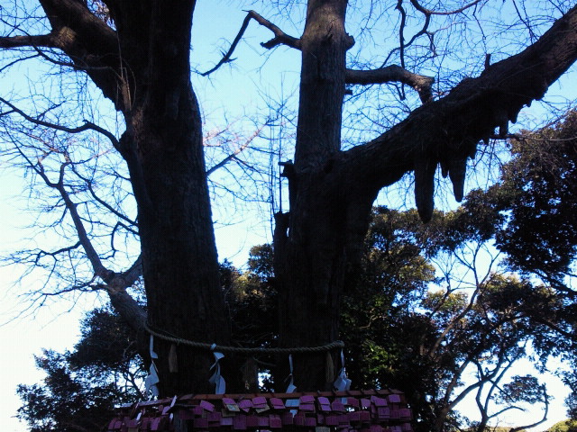 立派なご神木。下には縁結びの絵馬が沢山結び付けられていました。