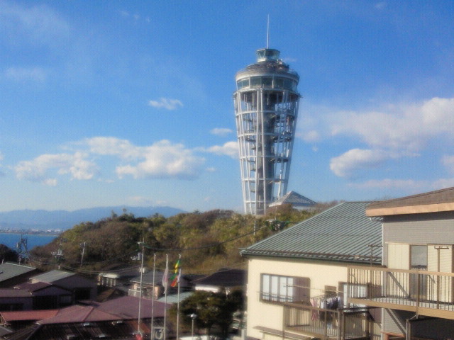 さらに歩いて行くと江ノ島のシンボルのタワーがすぐ近くに見えてきます。