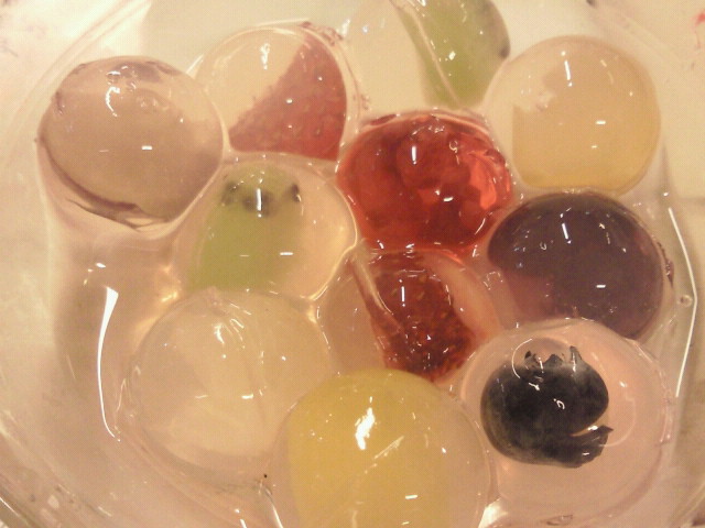 丸いゼリー(寒天?)の中に果物が入っていて見た目もすごく可愛くて涼しげですv