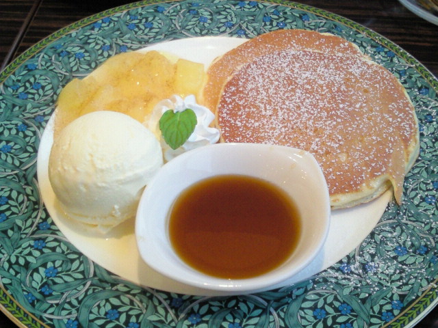 先日、新横浜のキュービックプラザ内のカフェで食べたアップルシナモンのホットケーキです。
