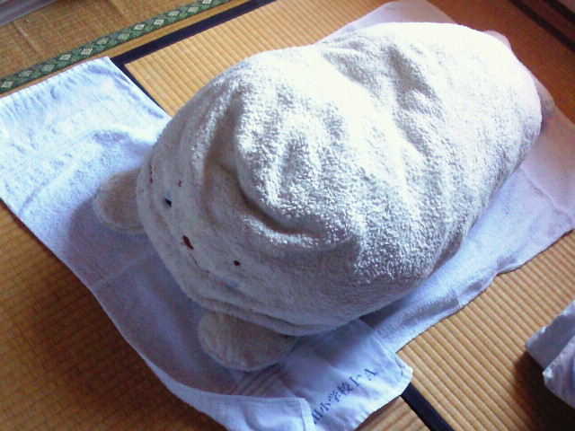 そういえば随分使ってなかったけど、部屋にしろたん(でかい抱き枕)がいたな~…お天気もいいし、久しぶりに洗ってあげるかっ!・・・と気合を入れたので今日はしろたんをお洗濯しましたw