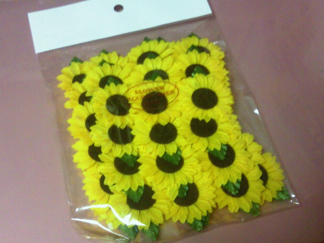 ラッピング用品の専門店で買ったひまわりの飾り。