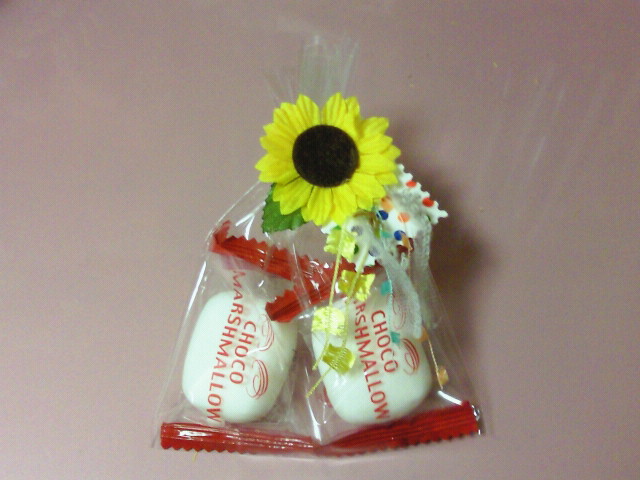 昨日の記事にあげた向日葵の飾りを使ってラッピングしてみました。