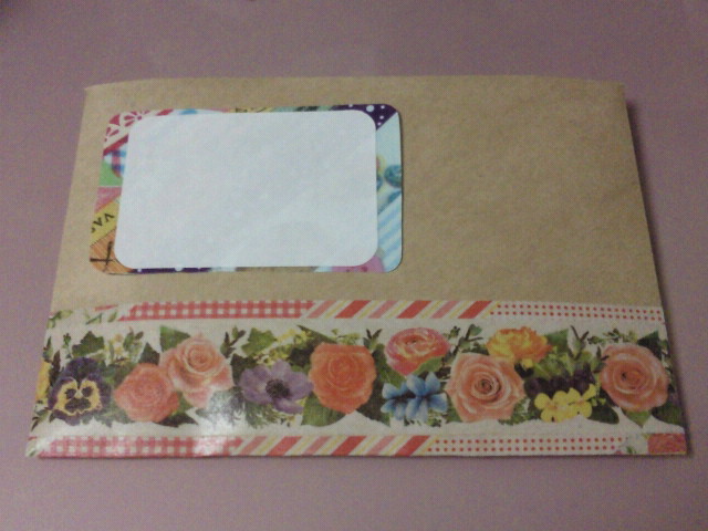 宛名シールは白いラベルの下にマスキングテープを貼って作りました。