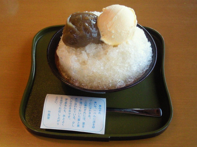 小布施で栗あんが乗ったかき氷をいただきました。