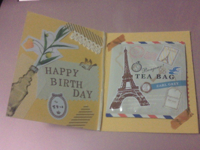 中を開くとこんな感じ。可愛くておいしそうな紅茶付きですv