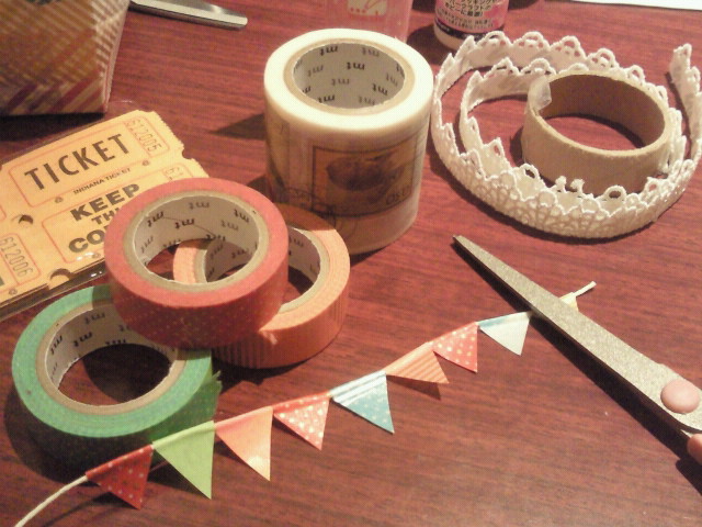 画像下の方に映っているカラフルなフラッグは糸とマステで作りました(*^_^*)