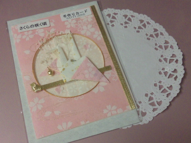 和紙を使った手作りカードで、春らしい素敵なカードです。