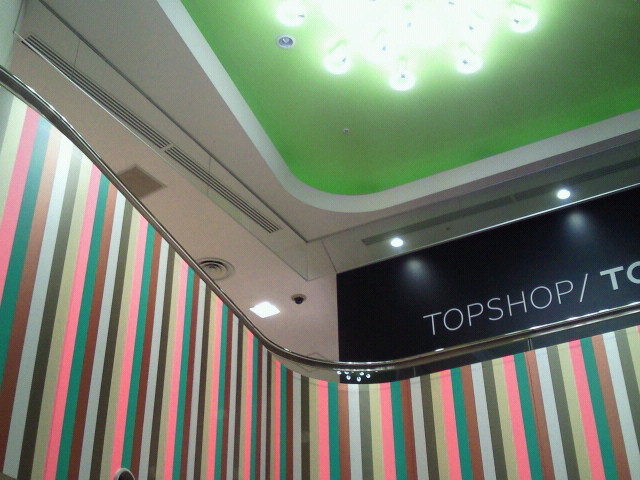 お店の出入り口付近も見上げるとこんな感じに壁にmtが貼ってあって素敵でした。
