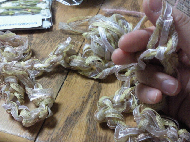 最近、職場の近くの本屋さんでアヴリルさんコーナーが出来てたり、デパートとかの文房具売り場のラッピングコーナーにRYU-RYUとアヴリルのコラボ糸があったりして、気に入ったのを見つけるとついつい買ってしまいます。