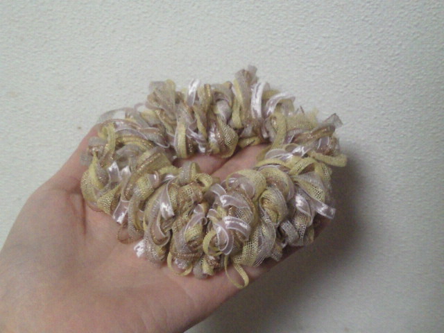 家に帰ってから早速ゆび編みでシュシュを編んでみました。