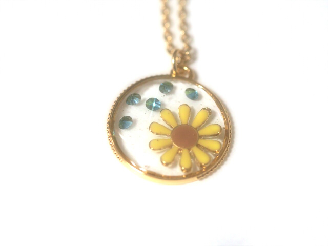 ヒマワリみたいなお花を添えて夏っぽいイメージのネックレスにしてみました。